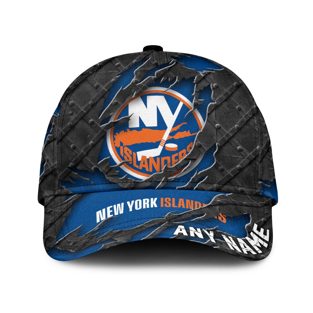 NHL New York Islanders Personalized Name Black Metal Design Classic Cap ST2501