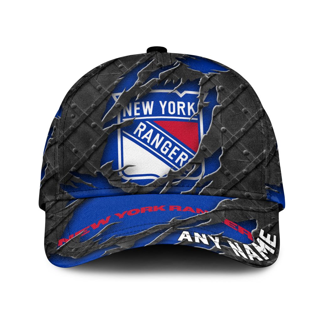 NHL New York Rangers Personalized Name Black Metal Design Classic Cap ST2501