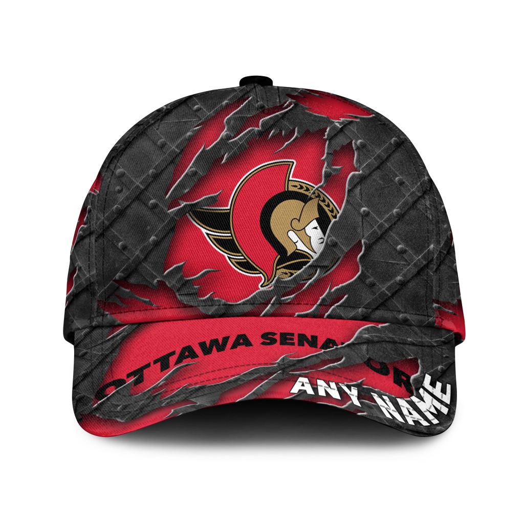 NHL Ottawa Senators Personalized Name Black Metal Design Classic Cap ST2501
