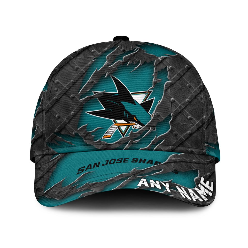 NHL San Jose Sharks Personalized Name Black Metal Design Classic Cap ST2501