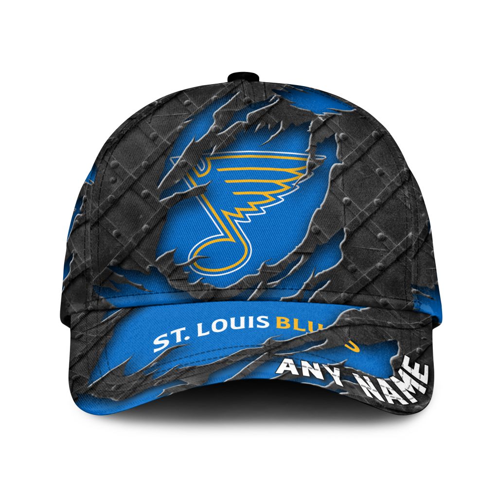 NHL St. Louis Blues Personalized Name Black Metal Design Classic Cap ST2501