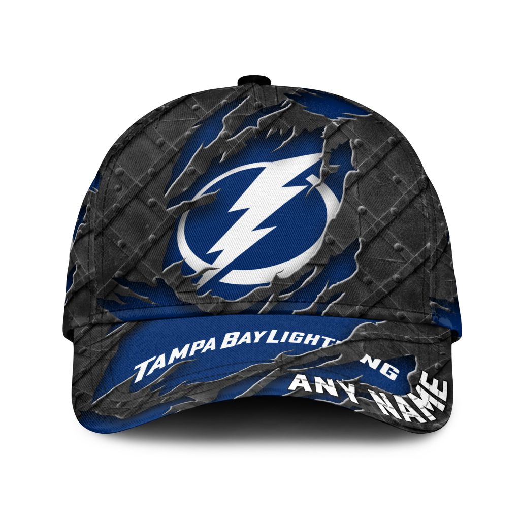 NHL Tampa Bay Lightning Personalized Name Black Metal Design Classic Cap ST2501