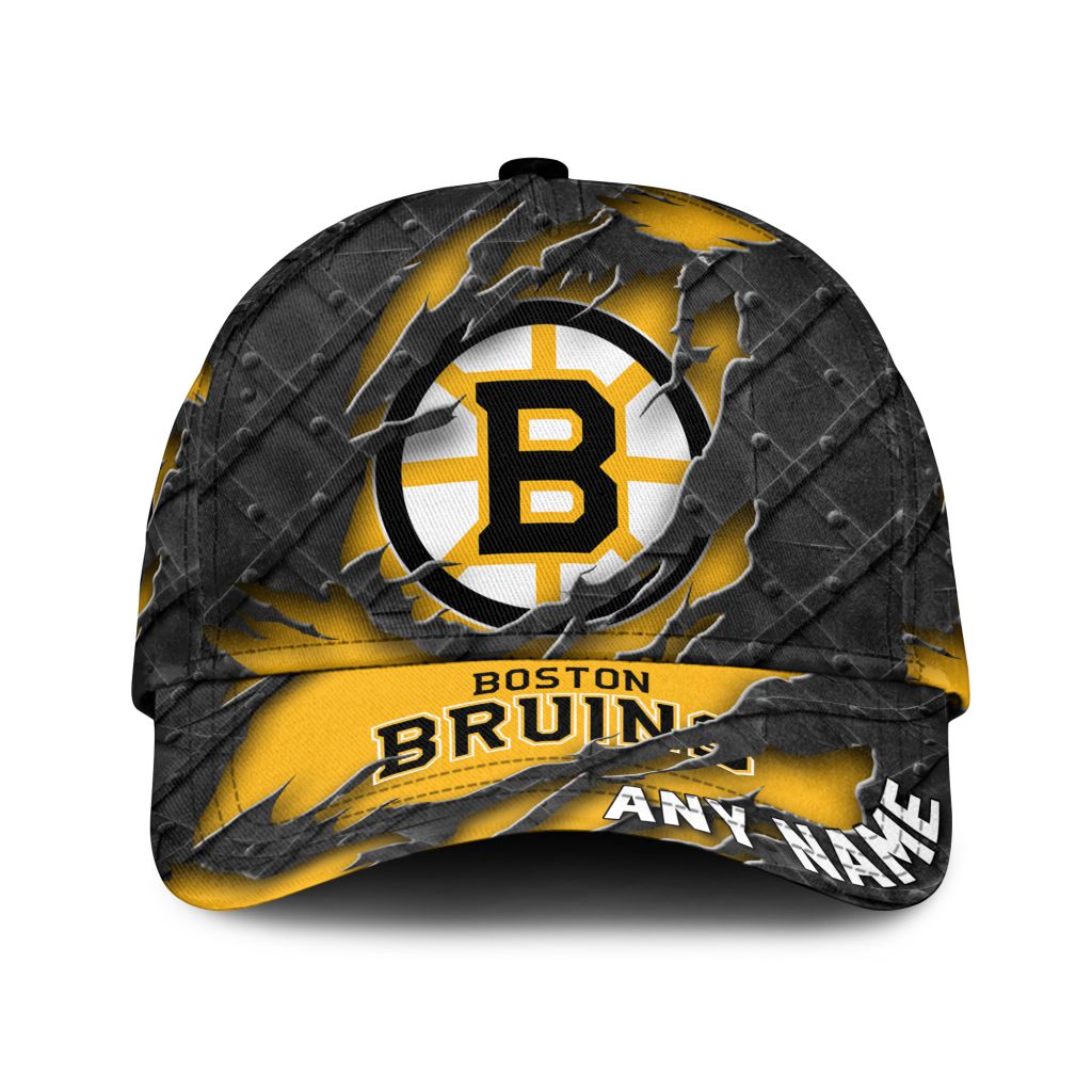 NHL Boston Bruins Personalized Name Black Metal Design Classic Cap ST2501