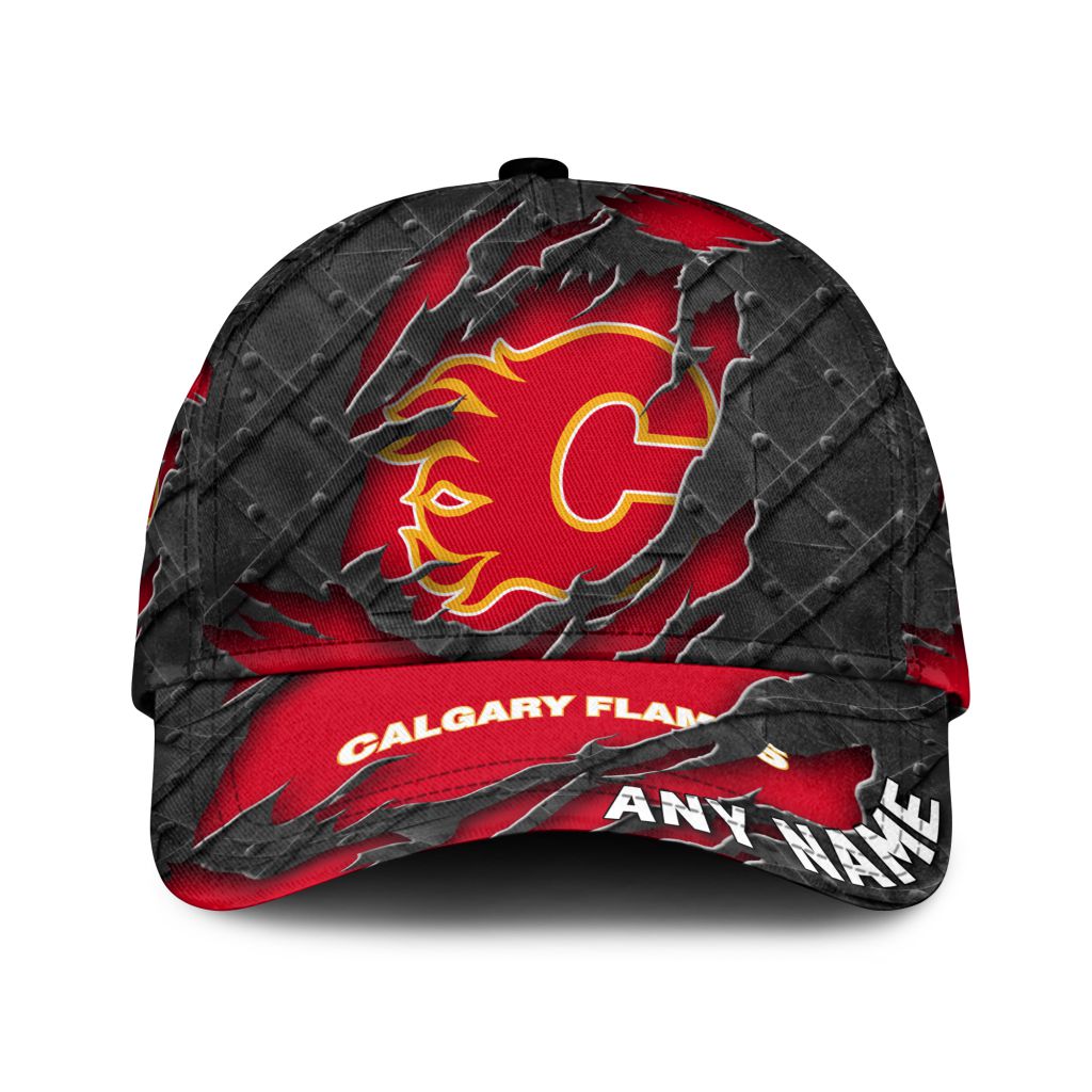 NHL Calgary Flames Personalized Name Black Metal Design Classic Cap ST2501