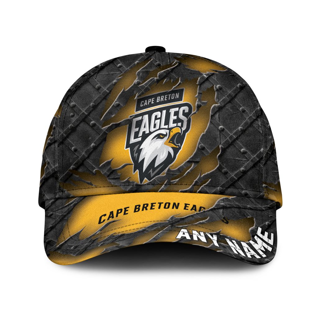 QMJHL Cape Breton Eagles Personalized Name Black Metal Design Classic Cap ST2501
