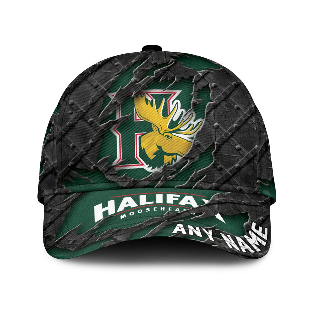 QMJHL Halifax Mooseheads Personalized Name Black Metal Design Classic Cap ST2501