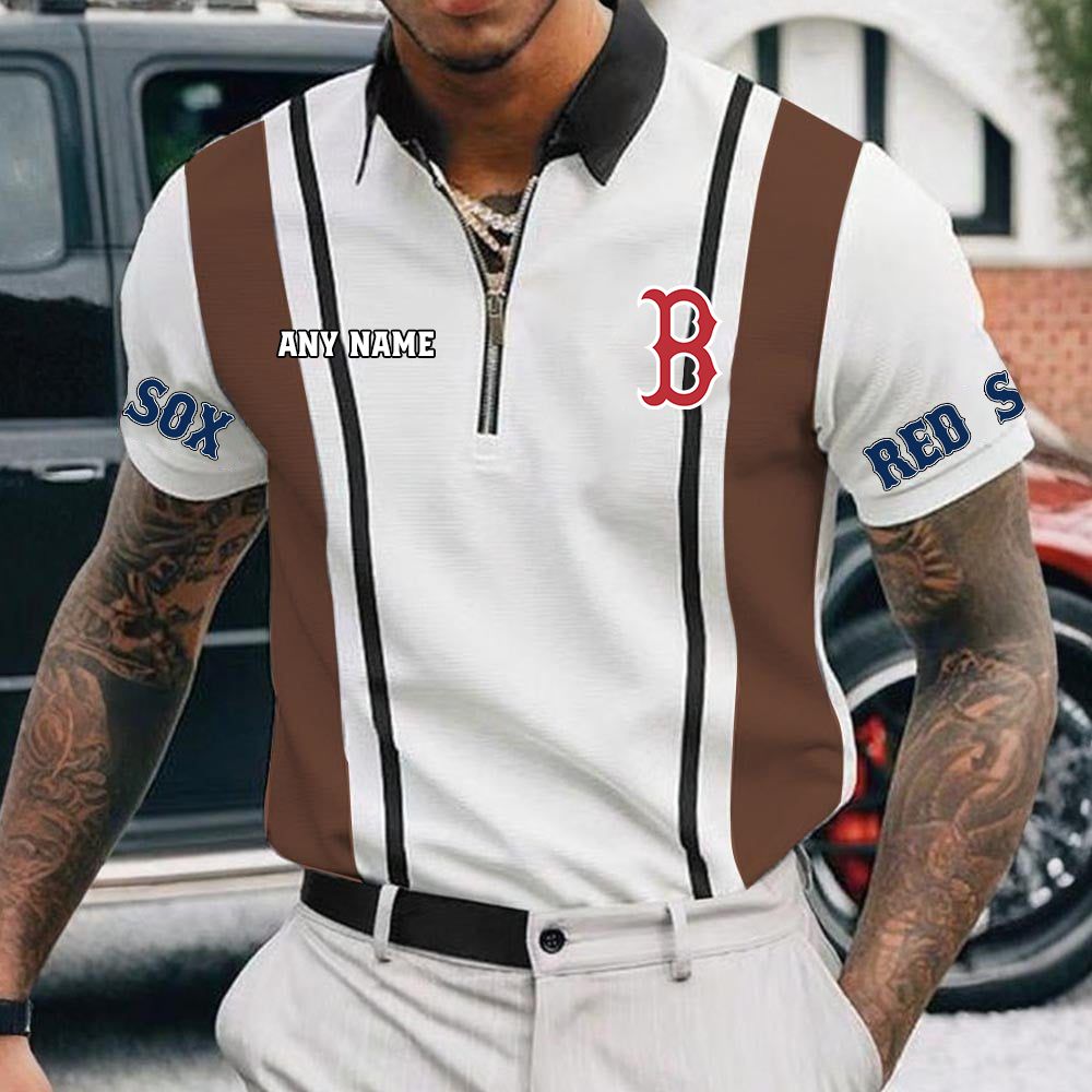 MLB Boston Red Sox Personalized Name Multi Color Zipper Polo Design ST2501