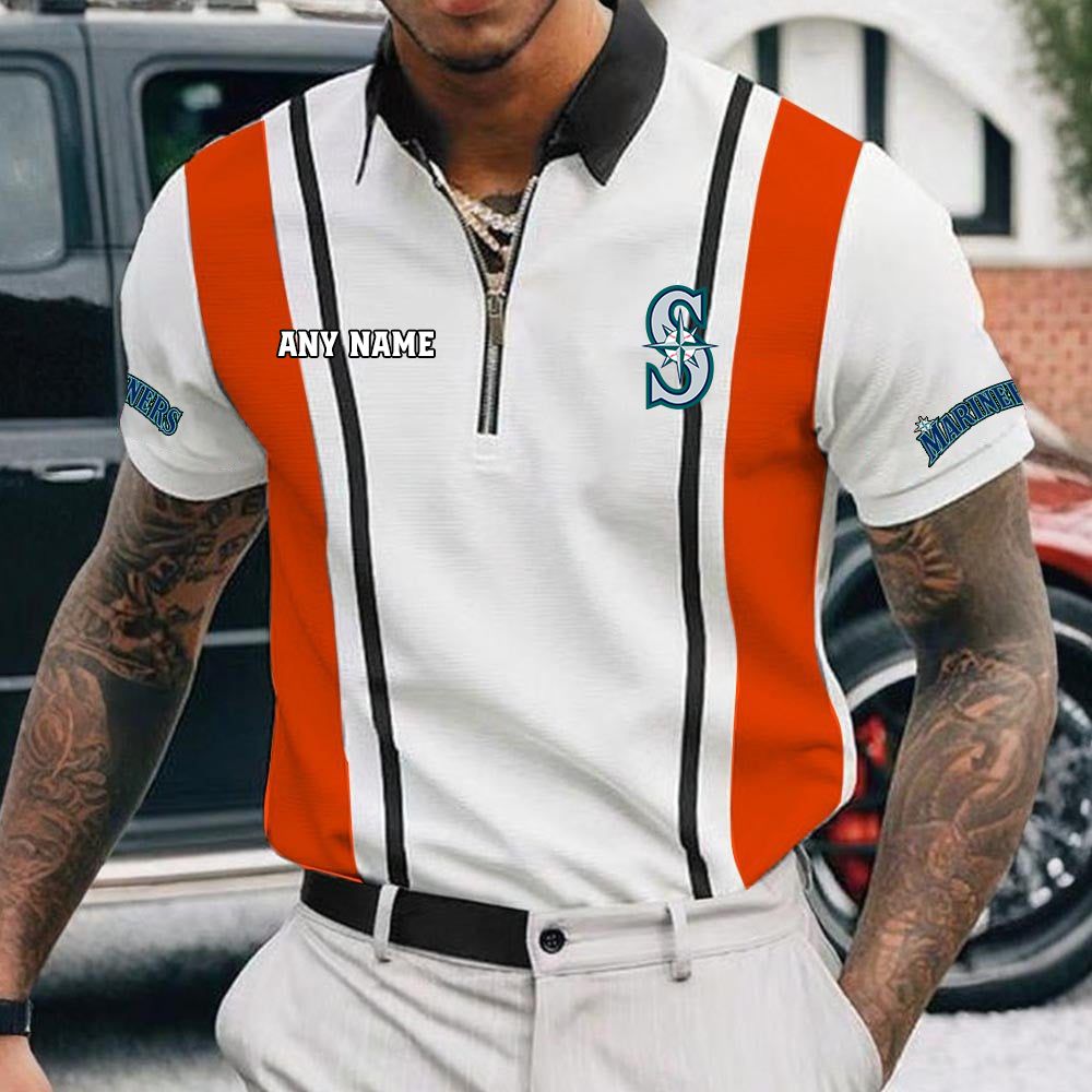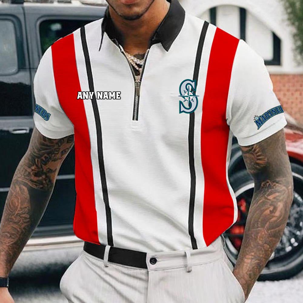 MLB Seattle Mariners Personalized Name Multi Color Zipper Polo Design ST2501