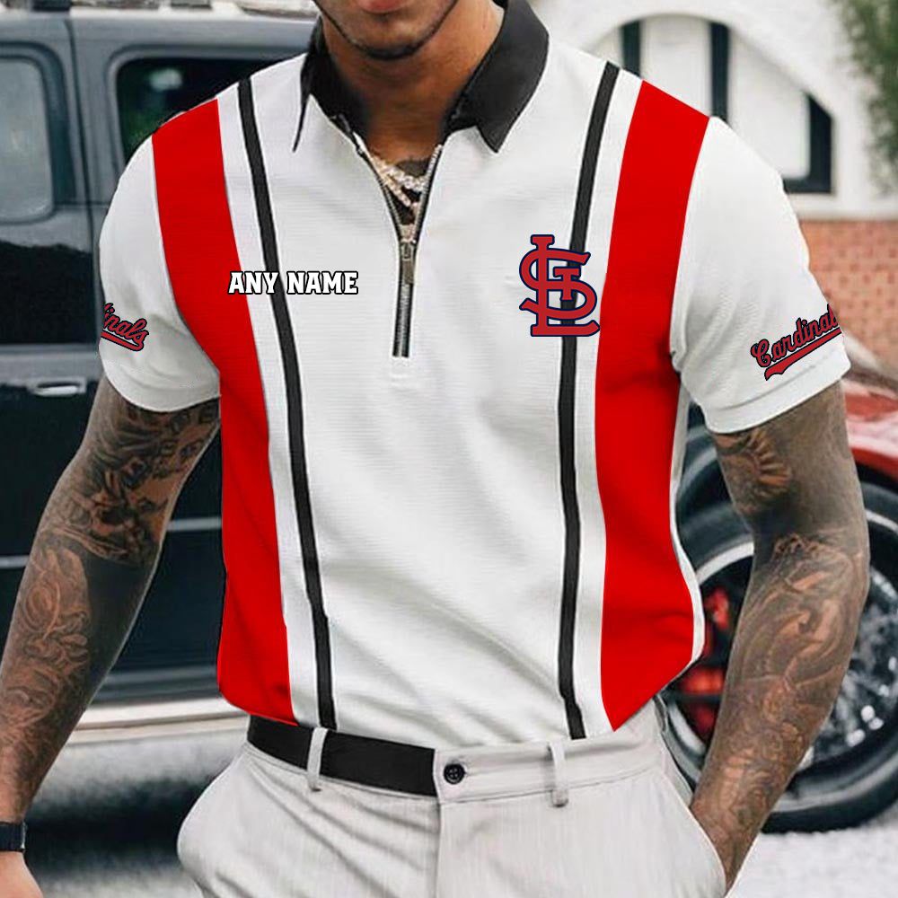 MLB St. Louis Cardinals Personalized Name Multi Color Zipper Polo Design ST2501