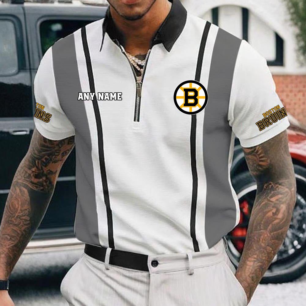 NHL Boston Bruins Personalized Name Multi Color Zipper Polo ST2501