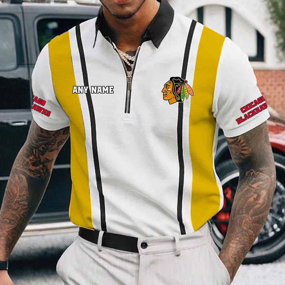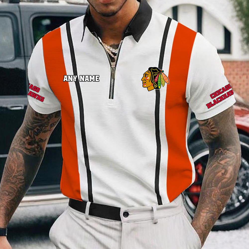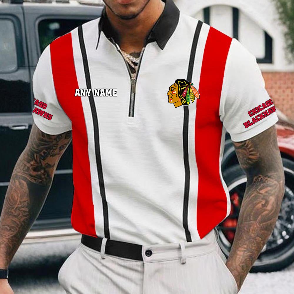 NHL Chicago Blackhawks Personalized Name Multi Color Zipper Polo ST2501