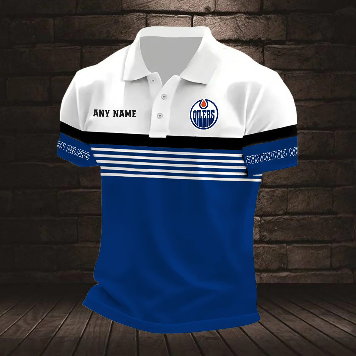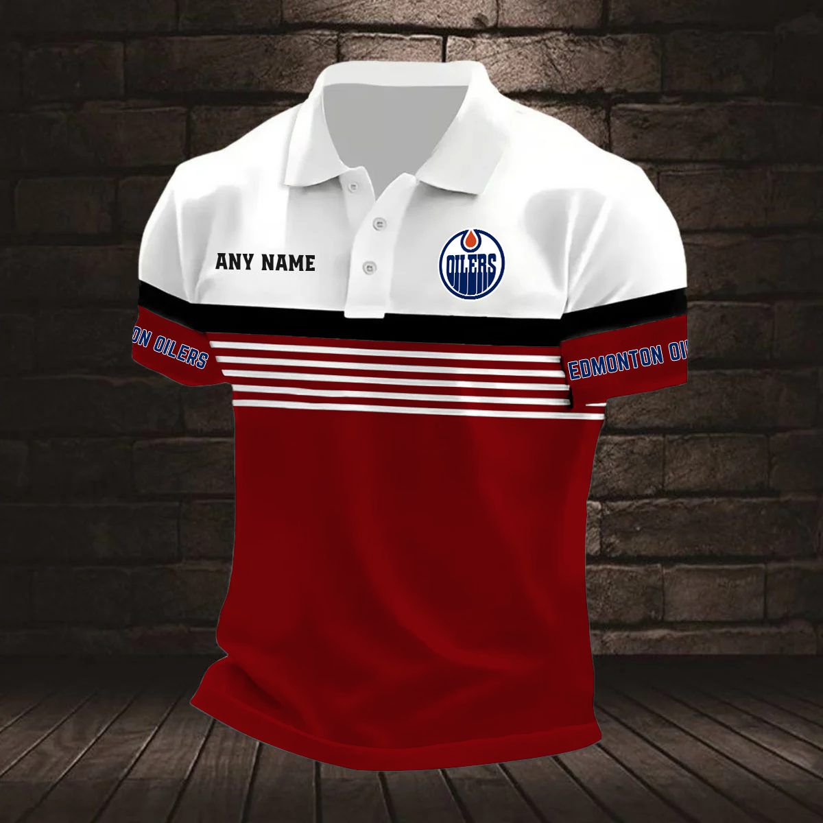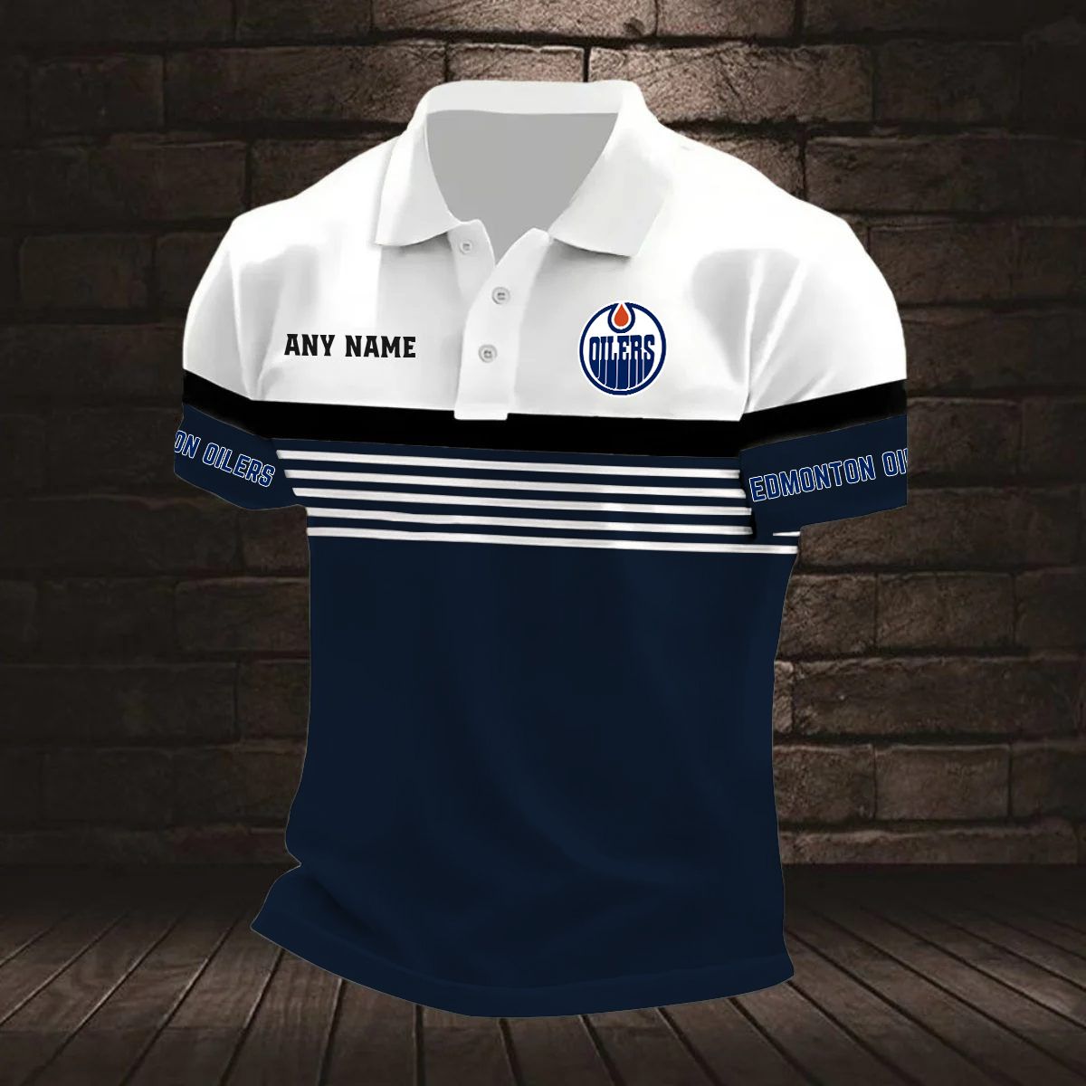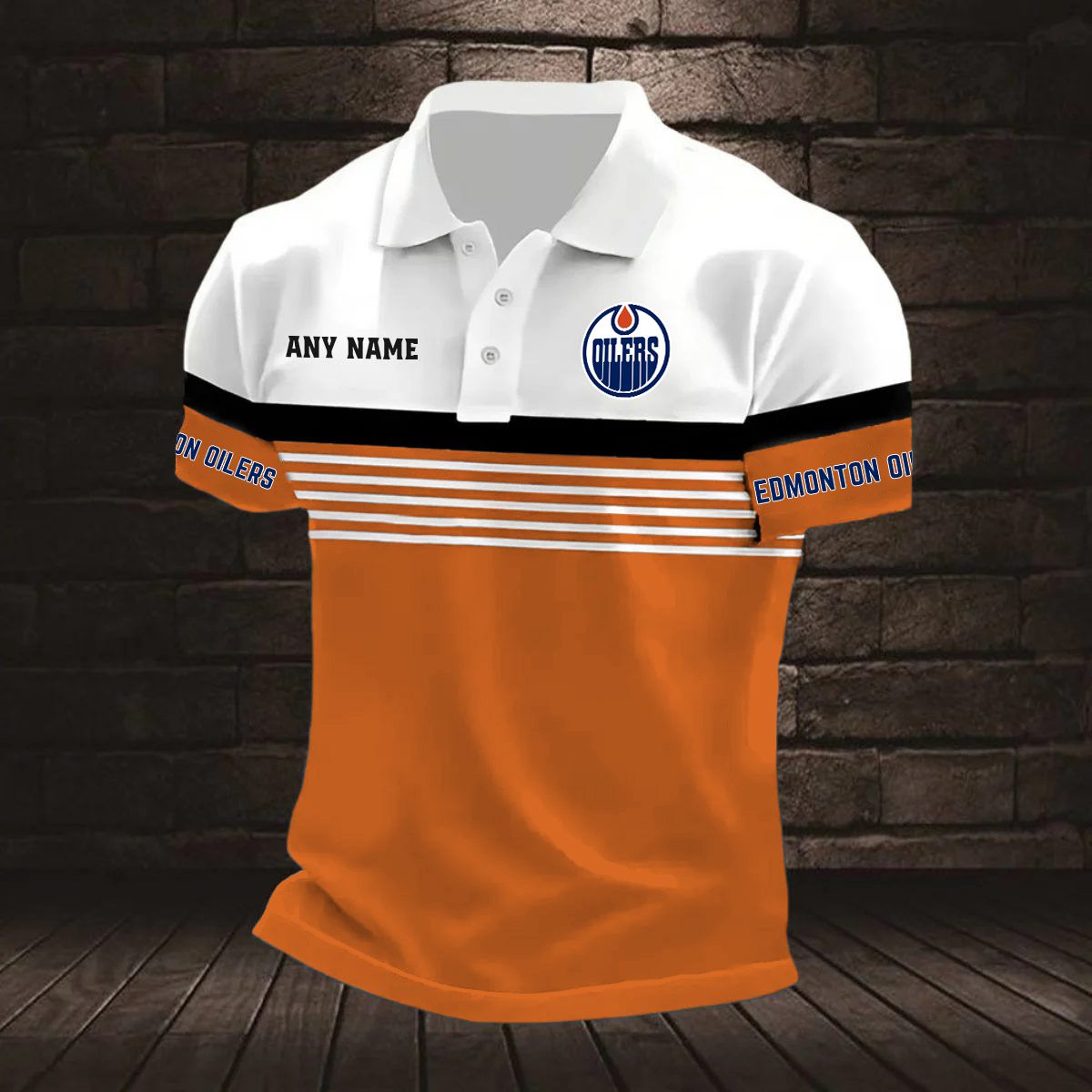 NHL Edmonton Oilers Personalized Name Stripped Multi Color Polo Design ST2501