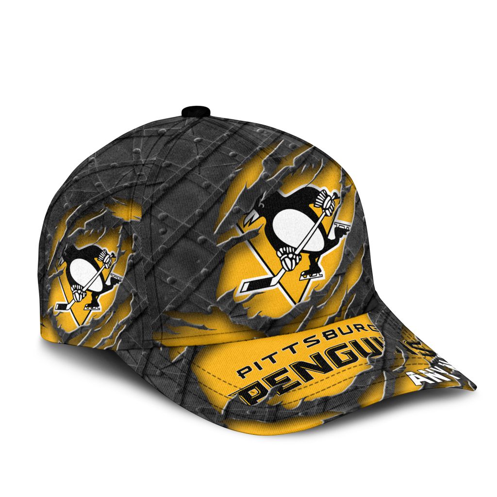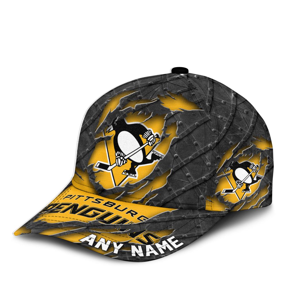 NHL Pittsburgh Penguins Personalized Name Black Metal Design Classic Cap ST2501