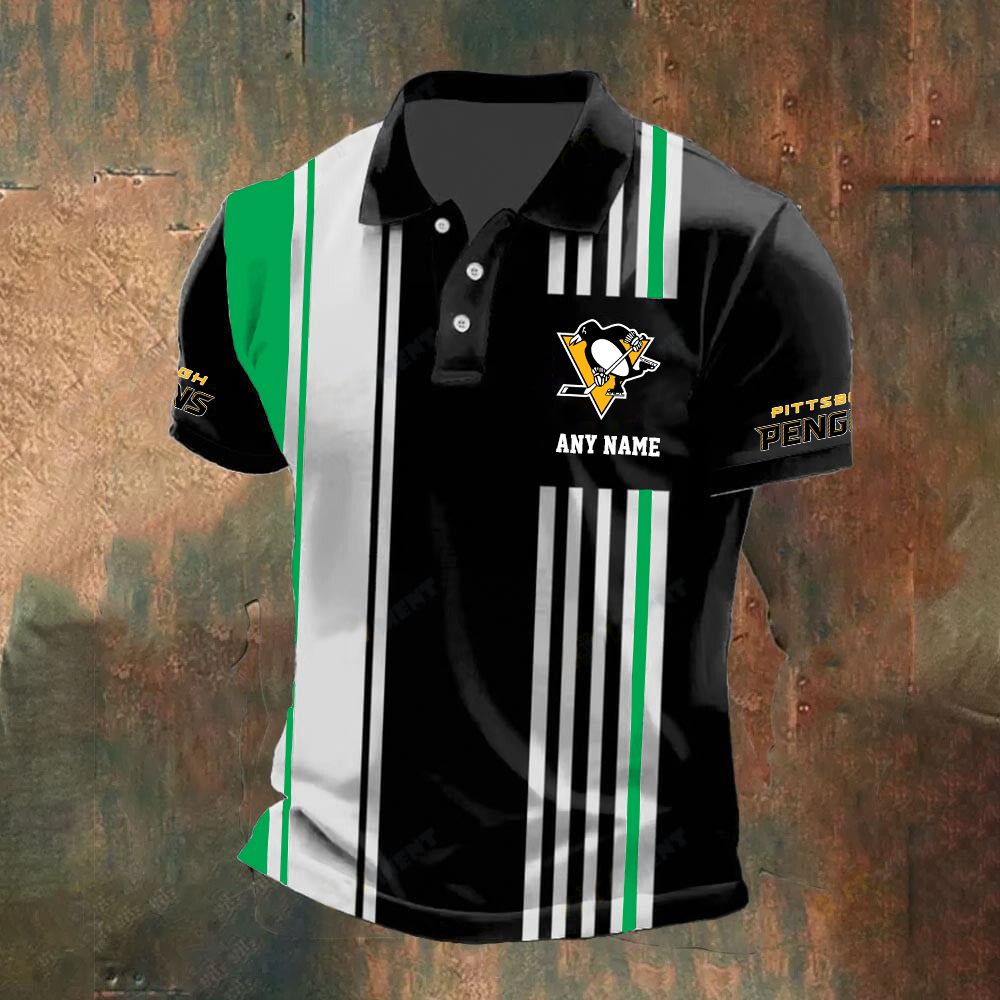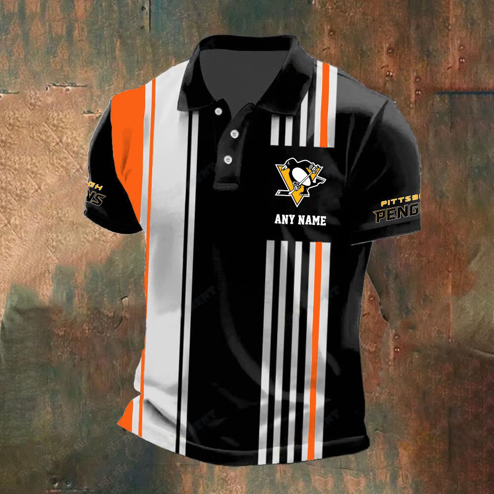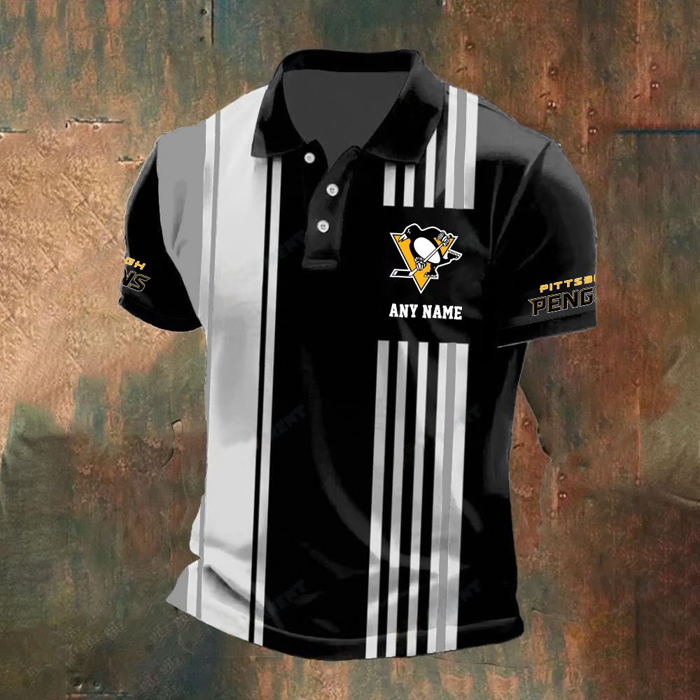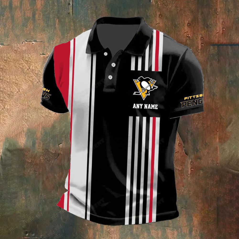 NHL Pittsburgh Penguins Personalized Name Stripped Polo Design ST2502