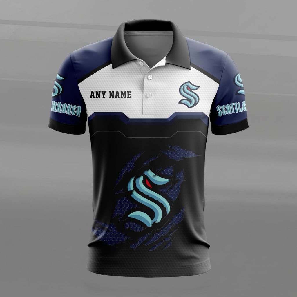 NHL Seattle Kraken Personalized Name MultiColor Polo Design ST2603
