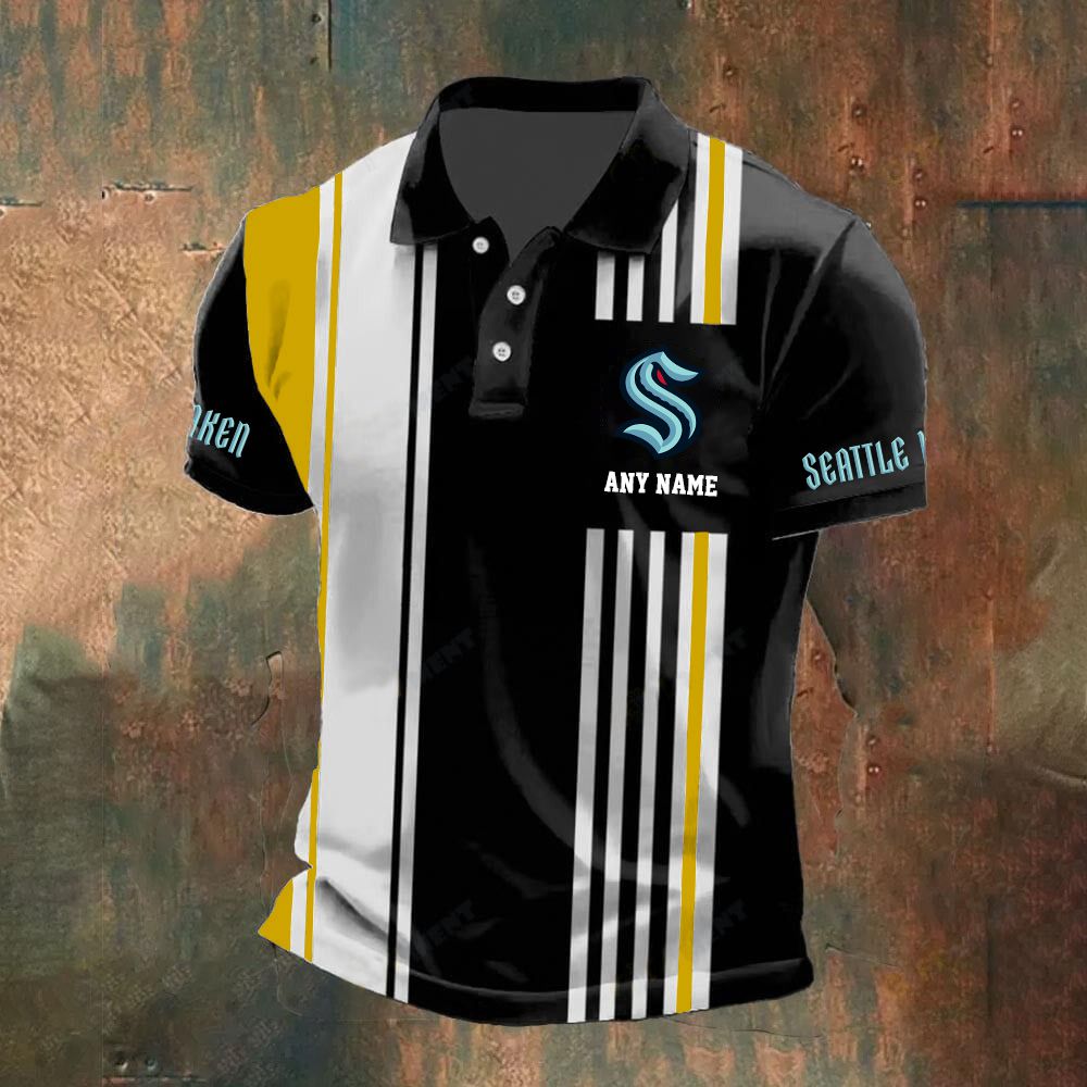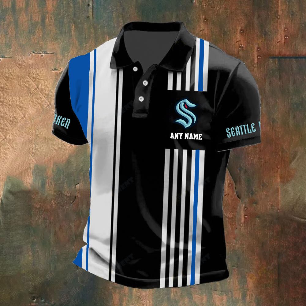 NHL Seattle Kraken Personalized Name Stripped Polo Design ST2502