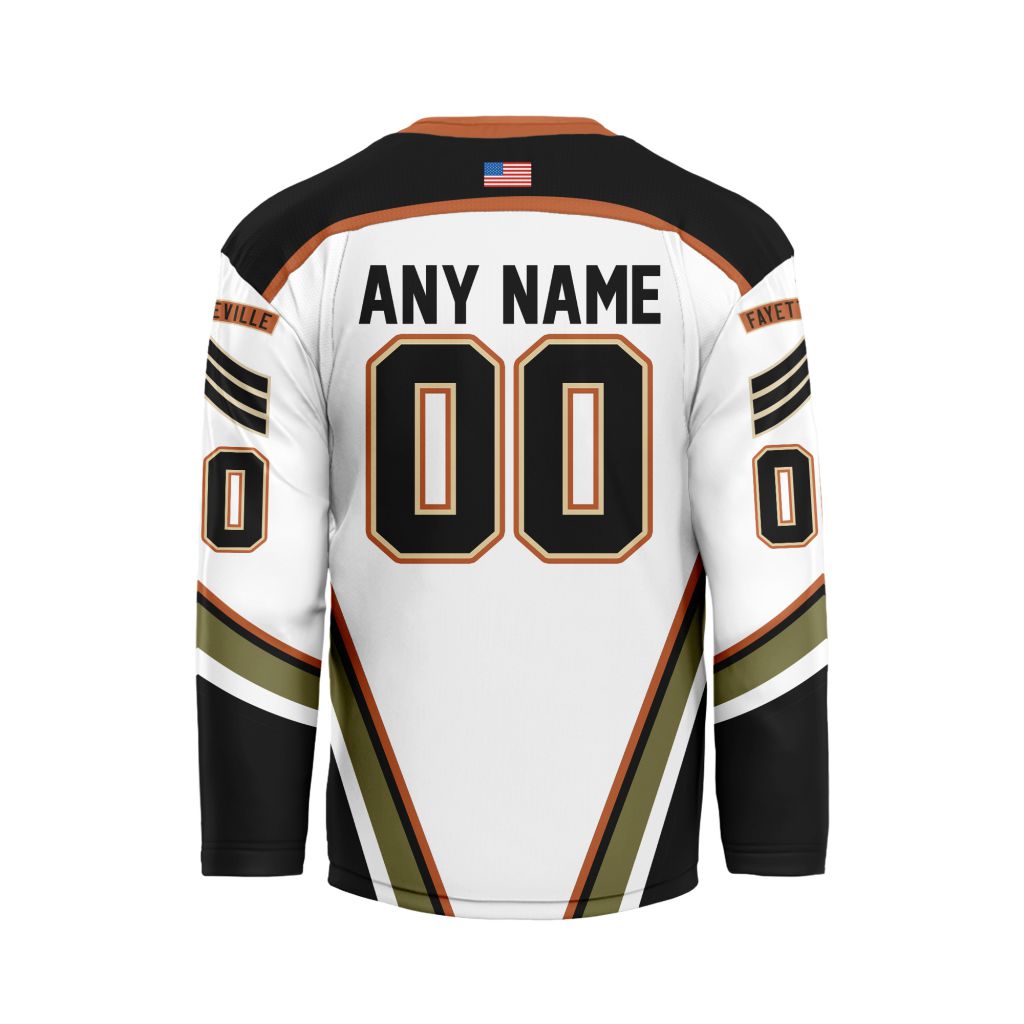 SPHL Fayetteville Marksmen Personalized White V-shaped Hockey Jersey
